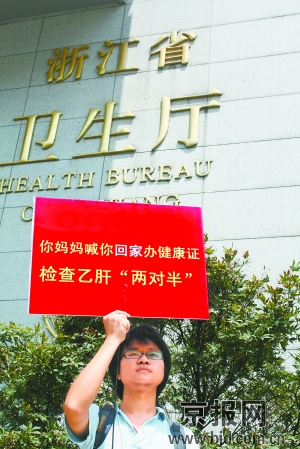 上網查詢乙肝相關資料后,雷闖更是驚訝地發現,全國上億名乙肝病毒攜帶者都遭受著歧視。雷闖告訴記者,其實早在2003年,他所在的浙江大學一名大四學生周某,在考取公務員后,卻因為乙肝病毒攜帶者的身份而被拒之門外。
