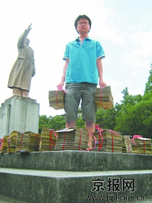 當時雷闖邀請了他的一個同學陪同。這個同學除了拍照之外,還承擔著另一個任務——給杭州市的各家媒體打電話,希望能有記者前來報道。可結果讓雷闖很失望,這一次他并沒有引起媒體的注意。那個陪同的同學,也因為“受不了路人的目光”而中途離場。
