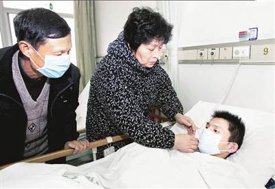昨日上午9時許,在同濟醫院外科2號樓,窗外漫天飛雪,陳玉蓉母子所在的病房一片暖意:母親身穿亮綠色中式棉襖,氣色恢復如常,不時慈愛地看著一旁的兒子。
