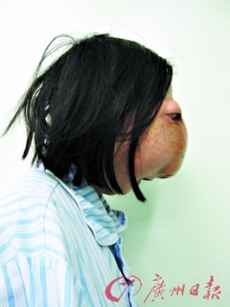 “活檢結(jié)果還沒(méi)出來(lái),基本確定是‘骨纖維異常增殖癥’,其實(shí)也就是她的顱腦內(nèi)、頜面部有著巨大腫瘤!绷钨F清教授表示,她的腫瘤與頭部等大,雖然呈良性無(wú)礙生命,但嚴(yán)重影響其生活。