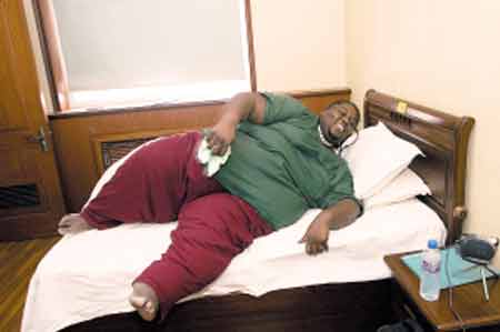 阿隆佐“老家”在美國芝加哥,與天津有13小時左右的時差,因此,他到津第一天就睡覺倒時差,睡醒后的第一件事就是稱體重。他踩上體重計后,醫(yī)生一連放了4個秤砣才測出他的重量——284.5公斤。在天津減肥生活的一年內(nèi),他計劃將體重減至90公斤左右。