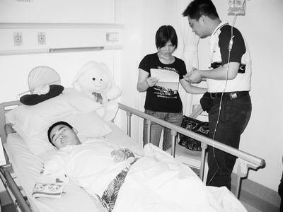 昨(2)日,記者來到位于成都的四川大學華西醫院,向“可樂男孩”薛梟轉交全國網友鼓勵信件。主治醫生項舟教授說,薛梟身體恢復不錯,已可以獨立下床扶著床邊行走。