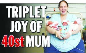 英國考文垂市肥胖女子麗恩·索特日前通過剖腹產手術生下了一組三胞胎,體重254公斤的她也因此成了世界上最肥胖的“三胞胎媽媽”。據悉,為了確保麗恩安全分娩,麗恩的剖腹產手術必須像軍事行動一般精確,為此醫院動用了4名外科大夫、4名麻醉師、5名助產士、12名新生兒顧問和護士共同幫麗恩接生下了她的奇跡三胞胎嬰兒!