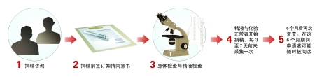體檢全部過關后,每個志愿者每隔3~5天,到精子庫通過自慰,采集一次精液,需要3~4次。采集完畢的精液,經過處理后,被貯存到液態氮中,以最后一次采集時間為起點,半年以后,還要對捐獻者再次進行血液檢查,確認沒有感染艾滋病毒,該志愿者的精液將最后打上“合格”標簽,進行冷凍保存。