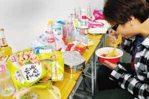 學生小江寧愿在宿舍吃泡面也不想去飯堂吃飯。信息時報記者 葉偉報 攝