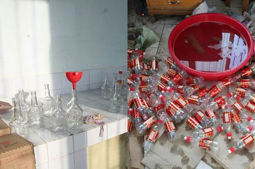 經(jīng)審訊,自2008年7月以來(lái),3名犯罪嫌疑人以1萬(wàn)余元的價(jià)格(每只空“五糧液”酒瓶4元、商標(biāo)8000余元)從浙江溫州一徐姓男子手中購(gòu)進(jìn)了300套假冒的“五糧液”包裝及商標(biāo),利用低檔“尖莊”白酒(每瓶約10余元)灌制假“五糧液”銷(xiāo)售到薩爾圖、龍鳳等一些煙酒店、超市,非法牟利10萬(wàn)余元(已揮霍)。
