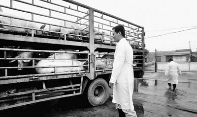 在廣州,調(diào)入生豬時,需要有生豬產(chǎn)地農(nóng)業(yè)主管部門出具的檢驗(yàn)報(bào)告書;到了交易市場,需要接受動物檢疫部門的抽檢;在肉聯(lián)廠或者屠宰廠,工作人員要提取尿樣檢測,主管單位則是質(zhì)檢和工商部門;市場上豬肉的檢測,則由動物檢疫部門負(fù)責(zé)。