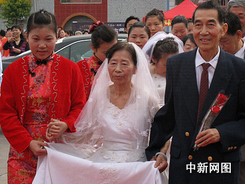 來自北京的張森州和江憶秋一同走過了四十一個春秋。老夫妻倆均是戎馬一生的軍人,目前已退休。張老先生告訴動情地說:“六十年代的婚禮實在太簡陋了,我們是在一個周末,買了兩斤糖請戰友們吃吃,就算是結婚了。今天的這場盛大婚禮,讓我深切感受到了新時代的美好生活,也讓我們老夫婦重溫了曾經走過的幸福時光。”