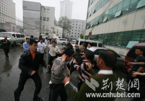 23日下午,湖北省婦幼保健醫院門前,發生一起流血事件:多名患者家屬在與醫院因醫療事故協商發生糾紛時,醫院一伙保安竟用“甩鞭”和鋼管等將患者家屬打倒,造成多人受傷。