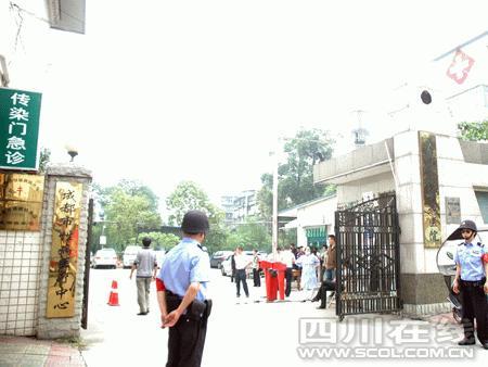 上午,在醫(yī)院大門口,聚集了大批記者,公安干警把手大門,任何記者不準進入。
