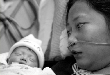 “寶寶,我是媽媽,是媽媽……”她不停地在寶寶的耳邊用微弱的聲音喚著懷里的寶寶,其實她多想寶寶能叫聲媽媽。寶寶躺在媽媽的懷里睡得很安心。一家人終于團聚了,寶寶不知道是不是聽到了媽媽的呼喚,昨日才一個月的寶寶終于睜開了眼睛。
