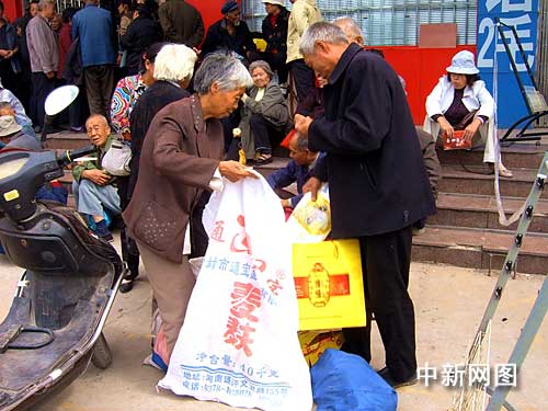 開(kāi)封市一家保健品專賣店門(mén)前,一種保健食品正在搞促銷活動(dòng),前來(lái)購(gòu)買(mǎi)的人絡(luò)繹不絕,其中絕大多數(shù)是農(nóng)民。記者在現(xiàn)場(chǎng)看見(jiàn)一對(duì)農(nóng)民夫婦,正在往大塑料袋里裝保健食品。這對(duì)農(nóng)民夫婦告訴記者,他們是在聽(tīng)了電臺(tái)的廣告后,才從鄉(xiāng)下趕到開(kāi)封市購(gòu)買(mǎi)的,這些“藥”花費(fèi)了近3000元。