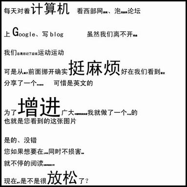 看到這樣的“保健”圖片,網(wǎng)友們不禁樂了,有網(wǎng)友稱雖然其很山寨,但是還是能夠達到一定的鍛煉效果的。