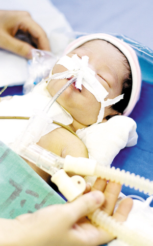 中秋節前添了個小寶貝,全家人都很高興。然而秋秋出生后沒多久,中心婦產科新生兒科的醫生們就發現孩子的嘴唇以及全身上下都開始發紫,而且越來越厲害。于是,中心婦產科醫院立即借助和胸科醫院的合作關系,請來胸科醫院的醫生為秋秋作B超檢查,發現秋秋屬于紫紺型先天性心臟病,原本應該連接左心室的主動脈移位,必須盡快進行“修心”手術,否則左心室便會萎縮、喪失正常功能,會有生命危險。這突如其來的打擊讓秋秋的父母痛不欲生,但小兩口仍然堅信自己的孩子一定能挺過這道難關,他們無論如何也要給孩子看好病。