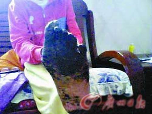 更令人吃驚的是她的腳,兩腳板變得漆黑,又干又黑的腳趾的肉已經爛掉,只剩下黑黑的骨頭,里面還沒爛的開始變得又紅又腫。唐麗艷告訴記者,她的家在連州市西岸鎮新立村,從小就患上這樣一種怪病,開始總感覺雙手有一種隱隱的疼痛感,手上的皮膚也逐漸變得干燥起來。到后來,疼痛感日益加劇,皮膚開始硬化,雙手指尖經常出現潰爛癥狀。