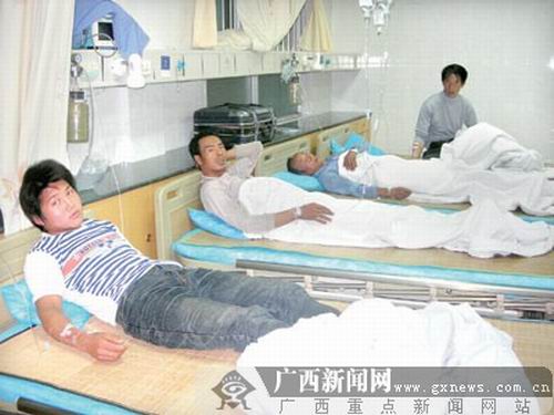 小楊告訴記者,出現(xiàn)中毒癥狀后,林場(chǎng)負(fù)責(zé)人就立即通知了120急救中心。晚上7時(shí)30分左右,有中毒癥狀的工友就陸續(xù)被送到南寧市第二人民醫(yī)院了。“我是晚上8時(shí)許來(lái)到醫(yī)院的”。