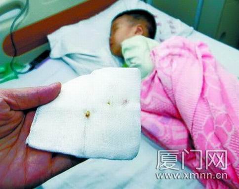 邱女士一家以為寶寶患了支氣管炎,甚至是肺炎,帶寶寶住了3次院,照了3次CT、4次X光,但就是沒有發(fā)現(xiàn)有異物。今年7月,寶寶發(fā)燒,邱女士懷疑寶寶是因為異物感染引起的,再次入住當?shù)蒯t(yī)院仍然沒查出有異物。