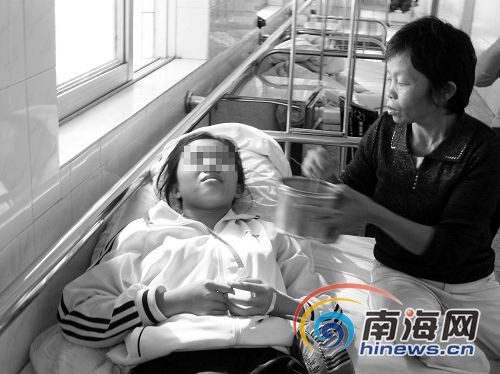 11月17日下午,記者在海南省農墾總局醫院神經內科病房看到,阿霞的媽媽、姨媽和同學都在一旁照顧阿霞。阿霞目光呆滯,嘴里不時地喃喃自語說:“我好奇心強,我要找知音陪我去逛街,我有好多話要說,我想找回我的記憶……”阿霞的媽媽和同學告訴記者,阿霞讀書很刻苦,成績都排在前幾位,她一直向往重點高中,還夢想著考上重點大學,考試總想要考第一。