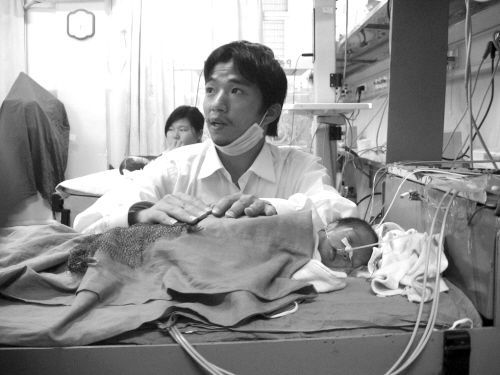 昨日上午,方秋林的兒子三次停止呼吸,據(jù)醫(yī)生介紹,孩子的情況現(xiàn)在很不穩(wěn)定,還是高危嬰兒。但是住院費(fèi)已經(jīng)用完了,醫(yī)院正在催促方秋林交錢,他也在盡最大的努力……