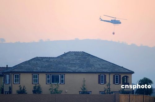 圖為消防直升機(jī)在鉆石吧市滅火。