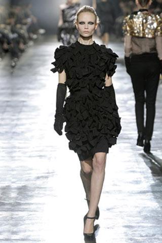 對經典“小黑裙”的挑戰,一直是設計師修行道路上的必修課,Lanvin這條裙子的款式是再經典不過的基本款,卻因大量如蝴蝶花瓣般的裝飾物而變的豐富起來。