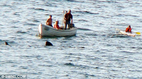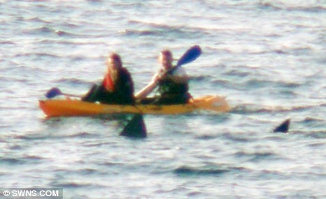 中新網6月4日電 據英國媒體報道,英國一群游客日前在康沃爾一處海上劃船時,意外遭到數只巨大鯊魚包圍,所幸他們保持鎮定,鯊魚感到沒有威脅后,默默離他們遠去。