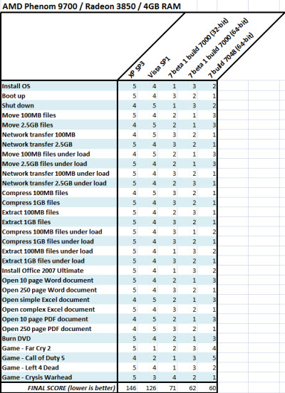 1. AMD Phenom 9700 2.4GHz system fitted with an ATI Radeon 3850 and 4GB of RAM