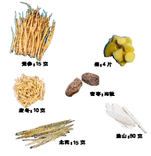 黨參是常用的補氣中藥,具補中益氣、和胃養血等功效,最宜用于平素倦怠乏力,精神不振,自覺氣短,稍一活動就喘促的氣虛患者,由于補氣也有助于生血,所以黨參也適用于氣血兩虛面色蒼白,頭昏眼花,胃口不好,大便稀軟,容易感冒的病人。黨參含有多糖、葡萄糖、果糖、菊糖、蔗糖、磷酸鹽和17種氨基酸,其中包括賴氨酸等7種人體不能合成的必需氨基酸,此外還含皂甙、揮發油、脂肪和鉀、鈉、鎂、鋅、銅、鐵等14種元素,這些都是黨參作為補益藥的物質基礎。