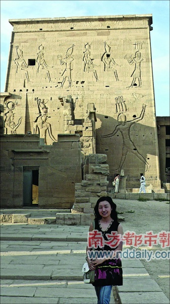 由于對法老文化極為著迷,蔚藍在年假的時候選擇了去埃及。由于線路冷僻,原本是打算四個閨中密友自助同游的,但后來打聽一下,她們的線路繁復,自助游相對比較困難,遂打消了念頭。但所幸找到了某家專門代理埃及線路的旅行社,四人可獨立成團,于是,把旅程上所有的吃喝玩樂的安排一股腦兒地都交給了旅行社,輕松踏上了神秘埃及路。