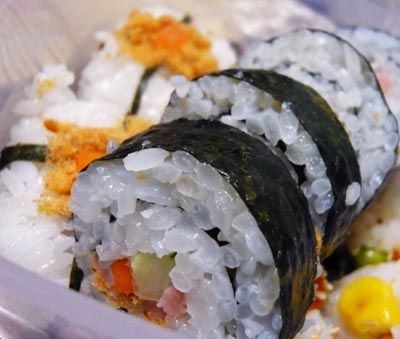 5.壽司。危險因素:壽司的最大問題是寄生蟲、扁形蟲和蛔蟲,例如生魚中的寄生蟲。雖然生魚不能保證安全,但是,蘸醬汁或者青芥可能會起到輕微的殺菌作用。解決辦法:魚至少在145度的高溫下烹調1分鐘,可殺死魚中的任何寄生蟲。但是,那就不是壽司了。唯一可生吃魚又保證不攜帶寄生蟲的方法是吃用冷凍魚做成的壽司。美國食品藥品管理局推薦,在零下31度的溫度下冷凍魚至少15小時可殺死寄生蟲。