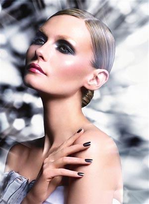 以最個性的方式展現低調的搖滾風潮。來自英倫大地的年輕模特CiaraNugent帶著一貫的酷感與個性,擔當了此款妝容的演繹模特,濃重煙熏眼妝,溫暖色和著晶瑩閃亮的雙頰配合微卷齊劉海、耳際隨意的小碎發,加上今季的流行圣品——叮叮當當的長串金屬耳環和BCBG的藕灰色晶銅亮片裝,剎那間一位不拘一格,應合玩樂風潮的英倫搖滾個性女郎站在你的面前!