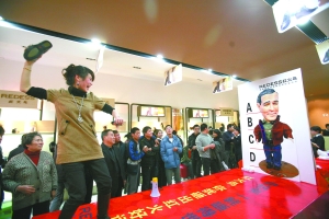 昨日,溫州市區五馬商業步行街紅火鳥皮鞋專賣店內,豎起了一個長相酷似布什的動畫人像,參與游戲的消費者只要在規定區域用鞋子砸中人像的不同部位,就可獲得不同折扣的皮鞋優惠券一張。活動一開始,不少人排著隊伍,依次拿著皮鞋砸向距離其3米左右的人像,特別是年輕的消費者,更是玩得不亦樂乎。趙用 攝