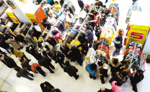 記者了解到,去年元旦北京百貨商場(chǎng)銷售增長(zhǎng)20%多,今年受金融危機(jī)等因素影響增幅有所下降。今年元旦期間,北京商場(chǎng)都加大了折扣促銷力度,服裝普遍在6折以下。記者前日在甘家口商場(chǎng)看到,全場(chǎng)商品都在進(jìn)行滿99減50的活動(dòng),耐克、衣戀等平日里很少打折的品牌專賣(mài)店內(nèi),擠滿了消費(fèi)者。耐克專區(qū)的相關(guān)負(fù)責(zé)人告訴記者,“往常只有在折扣店才有對(duì)折的優(yōu)惠,今年是頭一次”。另外,中關(guān)村購(gòu)物廣場(chǎng)等商場(chǎng)的化妝品也參與了商場(chǎng)“滿減”活動(dòng)。