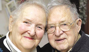 英國漢普郡滑鐵盧維爾市84歲老翁約翰·比尤沃辛和81歲妻子瑪格麗特盡管都已年過8旬,但他們?nèi)韵?0年前剛剛結(jié)婚時(shí)那樣恩愛甜蜜。