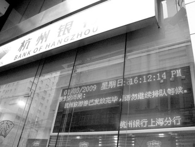 杭州旅游消費券在滬派發(fā)首日再現(xiàn)火爆場面。昨天,在滬通過杭州銀行派發(fā)的3萬份杭州旅游消費券在三個多小時內(nèi)就被爭領一空,過于熱情的市民甚至讓位于九江路上的杭州銀行上海分行一度暫停派發(fā)活動。