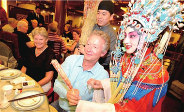 昨晚7點,在前門全聚德烤鴨店,京劇、川劇變臉和老北京的糖葫蘆,讓來自美國的130余名游客感受了一把地道的中國風。而這也是今年以來,該店接待人數最多的一個外國旅游團隊。(記者范繼文 胡笑紅攝影報道)