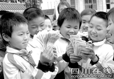 這里距離學(xué)校還有1000多米,8人身負(fù)特殊使命,一路小跑。“報(bào)告老師,我們交錢來(lái)了!”教導(dǎo)主任易光勇正準(zhǔn)備去上課,門口擁來(lái)的一群孩子送來(lái)一大堆現(xiàn)金,令他十分感動(dòng)。在易光勇的幫助下,孩子們把錢分成幾組,大家分頭清點(diǎn),然后統(tǒng)一統(tǒng)計(jì),共有現(xiàn)金8900元。