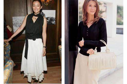 在飄逸的白色圓裙上,搭配合身的上衣。想穿著白裙子時,圓裙比長筒緊身裙更能掩飾過胖的身材。合身的深色上衣和白色大圓裙,巧妙地襯托出纖細的腰身。一串復古的長項鏈點綴,使你成為韻味十足的淑女。