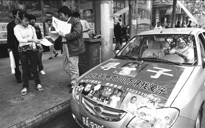 當(dāng)天11時(shí)許,在漢口中山大道民意四路路口,許多市民圍在一輛銀灰色小車前。小車前部和側(cè)面都被彩色噴繪覆蓋著,上面印有7個(gè)孩子的照片、名字和丟失日期。這7個(gè)孩子的照片和資料顯示,他們是在1998年到2008年之間丟失,丟失時(shí)最大的12歲,最小的只有2歲。