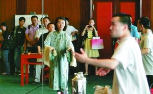 昨日,國(guó)家京劇院的排練館里,6名演員在參觀者面前認(rèn)真對(duì)戲。隔壁,一名女演員“表演”著化妝、穿戴,準(zhǔn)備唱一出“天女散花”,這些幕后工作平時(shí)并不對(duì)外開放。