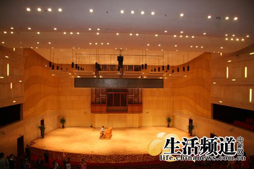 音樂廳是演出大型交響樂的專用音樂廳,可容納觀眾 800 人,具有接待世界著名交響樂團演出的能力,配有大型管風琴、 12 英尺鋼琴等大型樂器。其聲學設計、燈光系統均達到國內一流水平。 吳歆 攝影