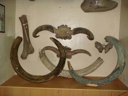哈巴羅夫斯克博物館里巨大的猛犸象象牙化石。