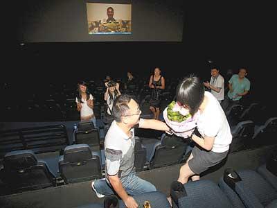 原來,80后的李燦悄悄邀約好友助陣,包下影院策劃出了這個浪漫的求婚儀式。