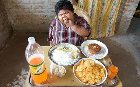 印度胖女孩或將自己“吃死” 疑患饑餓癥(圖)