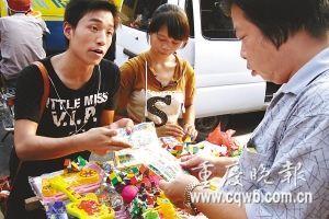 “買襪子、買皮包!”劉利紅扯著大嗓門叫賣。10天前剛擺地攤時,她還不敢看顧客一眼,更不能大聲吆喝。