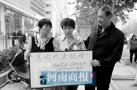 昨日,鄭州鬧市區內出現一對父母“真誠代女征婚”。
