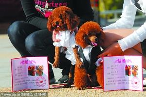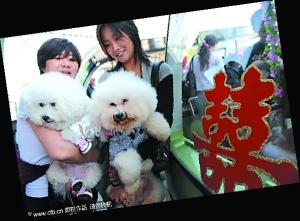 此次共有15對狗狗情侶喜結良緣。先是狗狗情侶坐車游園一周,然后一一通過紅地毯步入結婚現場,最后由主持人宣布兩對狗狗結為夫妻,現場頒發南京市寵物嘉年華管理中心頒發的結婚證書。鐘圖