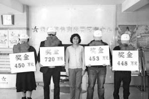 網民點評:從圖上來看,中獎獎金是從貴州省體育彩票管理中心頒出的,領獎人頭戴棒球帽,胸前戴朵大紅花,為了不被拍到正面,全都低下了腦袋。“領獎該高興啊,從這圖來看,怎么看都是很沮喪。”網民說,下次再有中獎者,干脆搞個蒙面舞會。