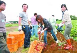 一群未婚男女在東京北部的偏僻的茨城縣一起挖甘薯。