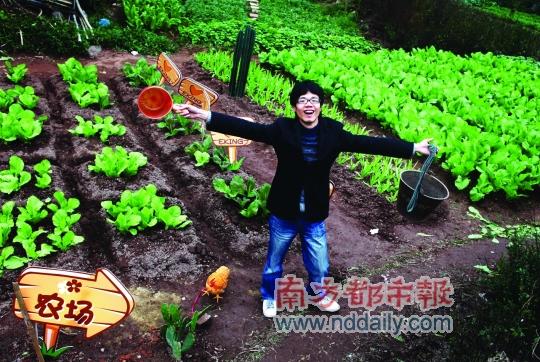 長五六米,寬三米多,整齊地種著幾畦綠油油的芥菜,“農場”的邊緣插著很卡通的牌子,上面畫著可愛的心形圖案,下面寫著“Eking”,似乎是在表明農場的“主權”。此外,這個迷你現實版的開心農場里還種著兩株仙人掌,而為了契合“農場”這個主題,甚至還還放養了一只老母雞。小任說,這塊菜地是附近程介村村民吳阿姨的。小任和吳阿姨素不相識,吳阿姨也搞不懂什么開心農場,但聽說他是為挽回女朋友的心,當即表示可以把這一小塊菜地無償借給小任使用。吳阿姨告訴記者,這塊位于天河區員村四橫路的菜地馬上就要被征用了,借給小任用一下也無所謂,只是她沒想到,改造的“工程量”還很大。